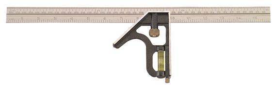 Overview Johnson Level & Tool 420EM 16-Inch ch/Metric Square Combo, Johnson's combination square are ideal for general carpentry use, combination squares have heads with 'fences' at 45 and 90 degrees. The square's head slides along the blade and can be locked in position, allowing you to accurately transfer a distance and hold it while drawing your pencil line Features: -Metric metal combo square. -Heavy duty cast zinc head with black, chip-resistant e-coating finish. -CNC machined square head for greater accuracy. -Reversible head with lock bolt and steel screw. -Hardened, screw-in scriber won't fall out. -Durable acrylic vial. Specifications: -Steel blade with permanently stamped graduations 0.13", 0.06", 0.03". -Dimensions: 16" H x 5.5" W x 0.75" D.