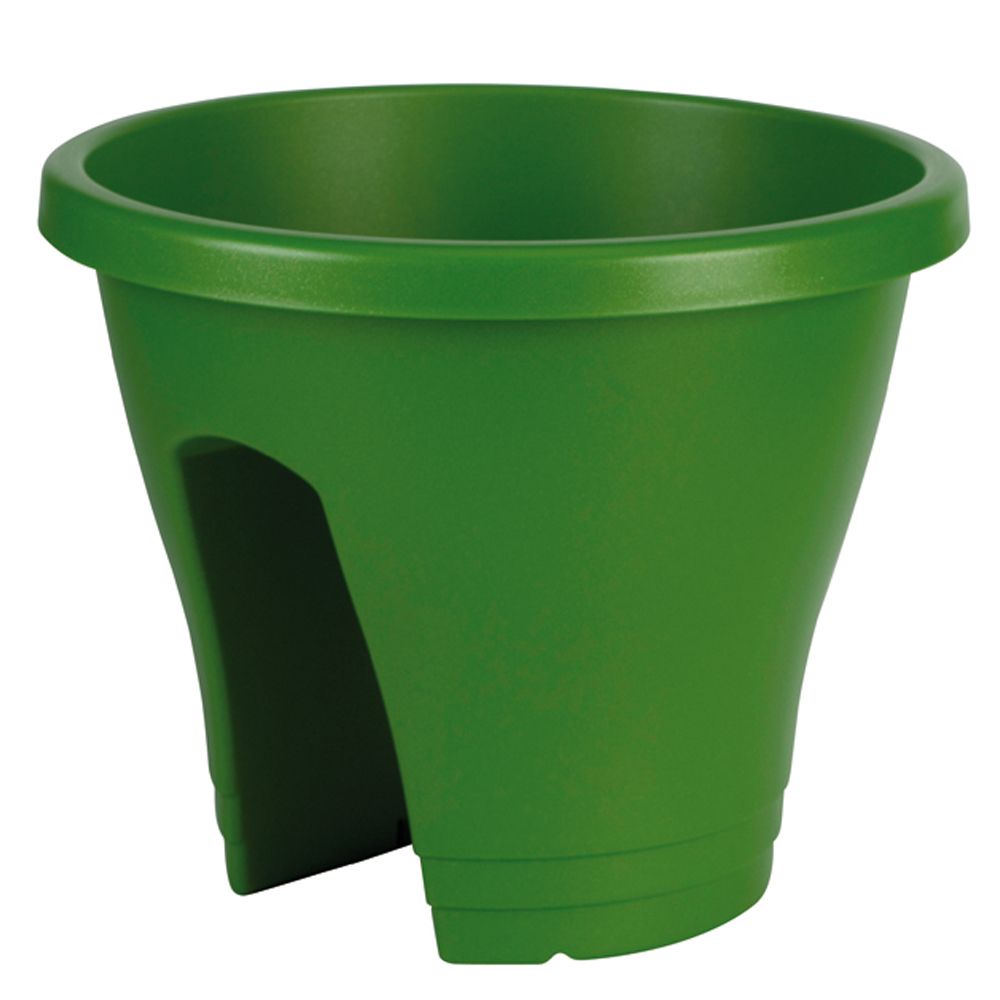 Corsica Flower Bridge planters are deigned to fit standard railings upto 2.75 inches wide: balconies, picket fences, chain-link fences, old fashioned rod-iron railings etc. They do Not fit deck railings. Mix them up to add lots of color and flowers to your balcony. The round units are sold in sets of 2. They come with "spacers" which can be used to hang the Flower Bridge Planters straight - They also prevent the pot from moving around. The overflow outlets at the bottom on each side raise up enough so that the bottom 1.5" space act as a reservoir. Capacity: 1.9 gal Country of Origin: Netherlands Finish: Forest Green Height: 9-1 2 Length: 11-1 2 Material: Polypropylene Weight: 0.9 Width: 11-1 2