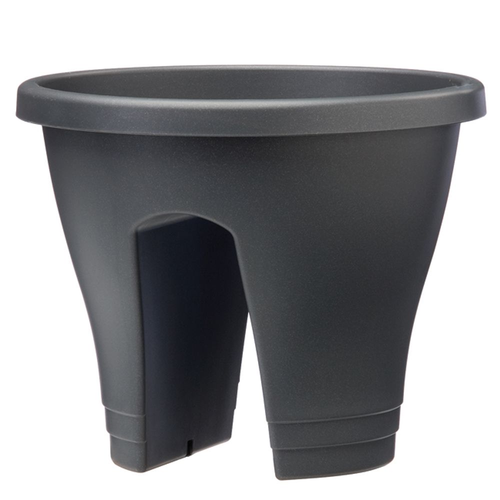 Overview Exaco Flower Anthracite Corsica Flower Bridge Planter, An exciting variant to the classic bloom pot and a balcony planter. These planters are specially designed for narrow railings, balcony railings, chain link fencing, and any vertical divider up to 2.5" wide. Attractive balcony planters were the winners of the Retailers' Choice Award at the National Hardware Show. Features: -Flower bridge planter-Fits most fences and rails-Raised drain plugs to retain water in bottom but not flood the plants-Indoor Use: Yes-Material: Resin-Number of Planters in Set: 2-Distressed: No-Country of Manufacture: Netherlands. Dimensions: -Overall dimensions: 9.5"H x 11.5" W x 11.5" D-Assembled Weight: 0.9 lb.
