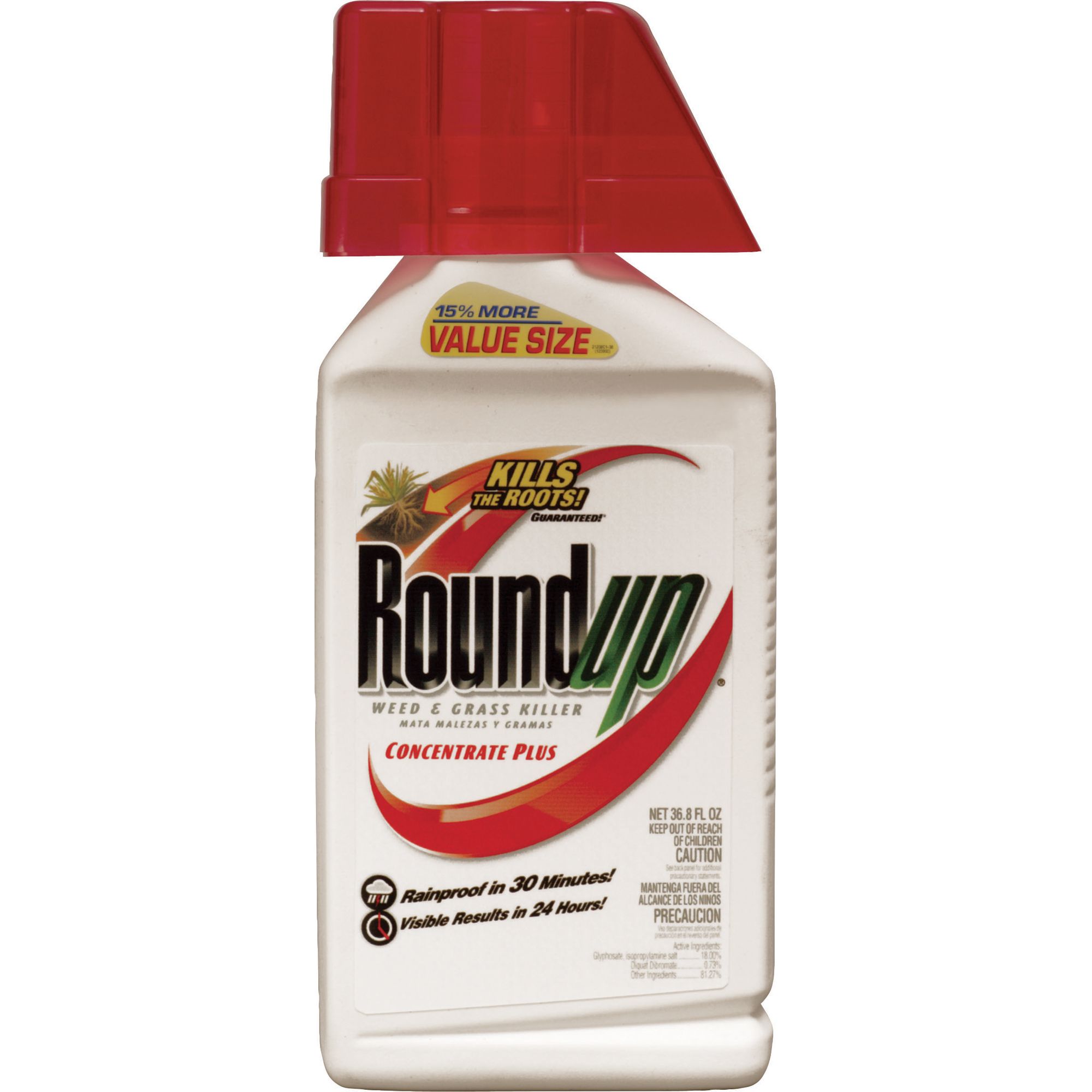 Overview Scotts Ortho Business Grp Roun, Roundup, 36.8 OZ, Roundup Concentrate Weed and Grass Killer Bonus Size, Faster Uptake On Roundup Into The Weed, Rainfast In 2 Hours, Won't Wash Off, More Killing Power Into The Root; Use In and Around Fences, Trees, Driveways, Flower Beds, Walkways, Shrubs, For Lawn Renovation and Vegetable Garden.